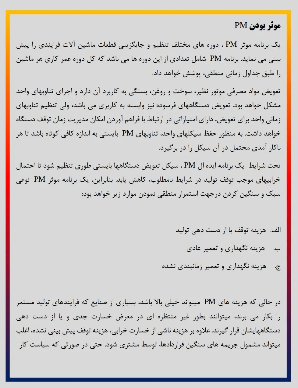 تحقیق نگهداری و تعمیرات پیشگیرانه برای دستگاه هی موجود در یک کارخانه