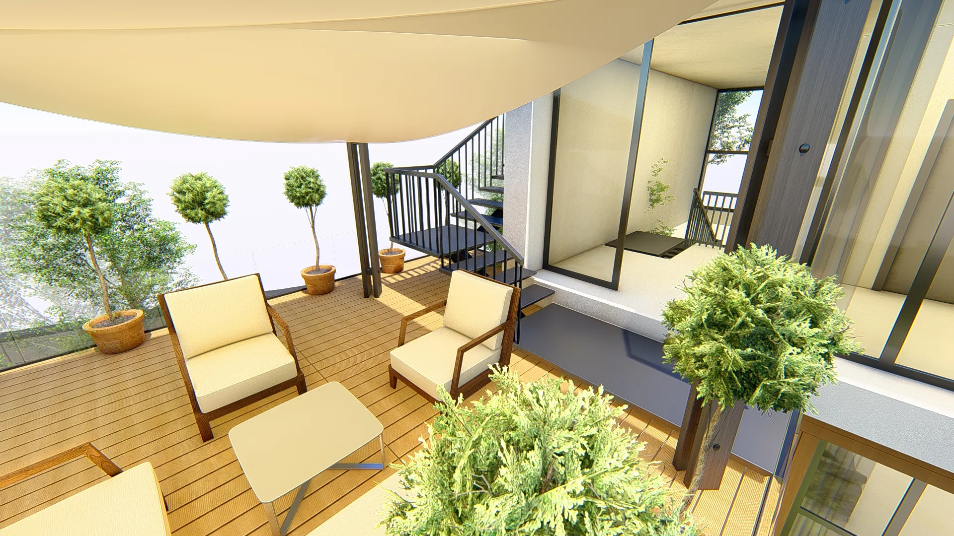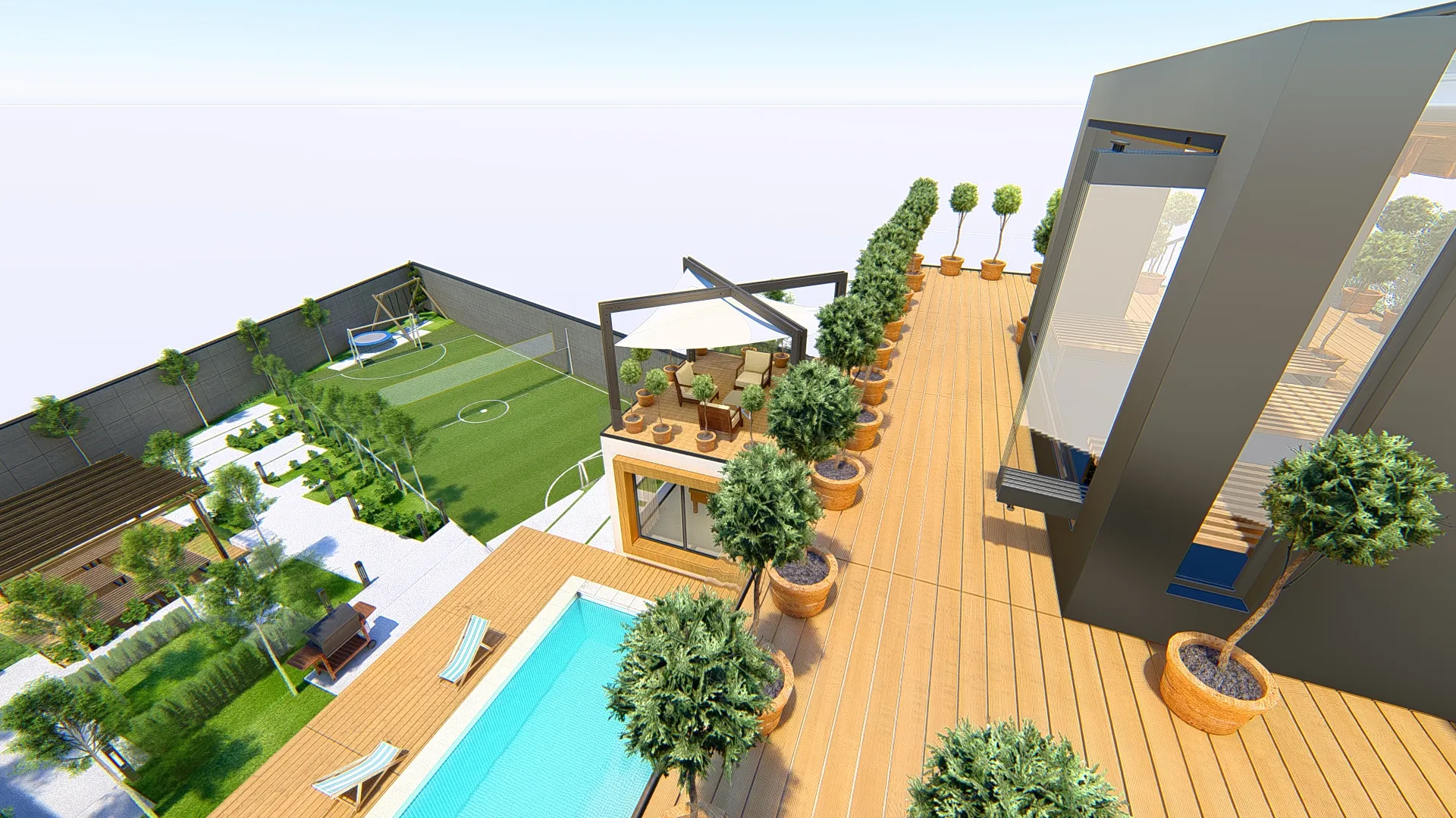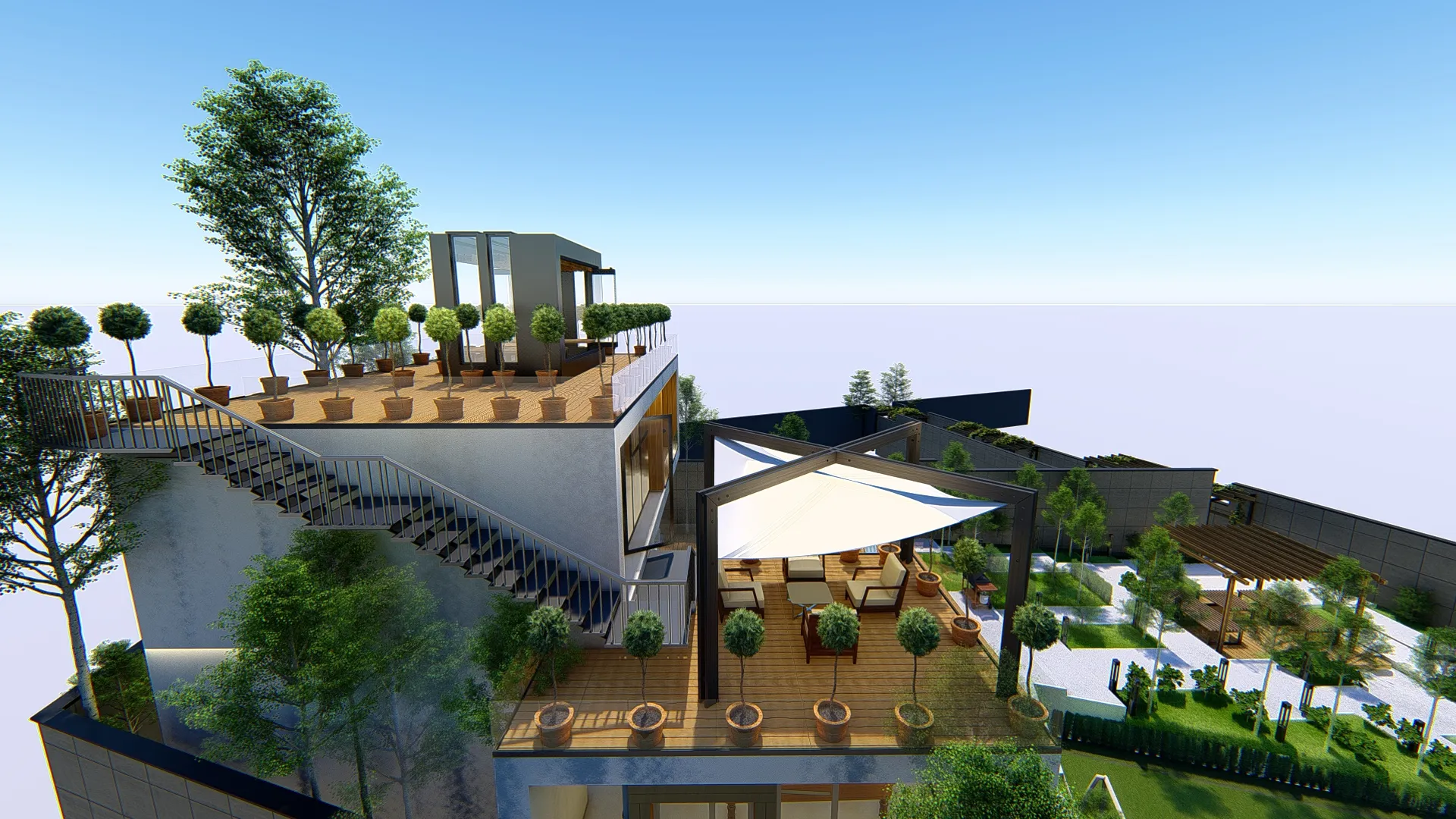 آلترناتیو 2 شامل: طراحی حجم و نمای ویلا و طراحی منظر و طراحی سر در و پارکینگ ورودی