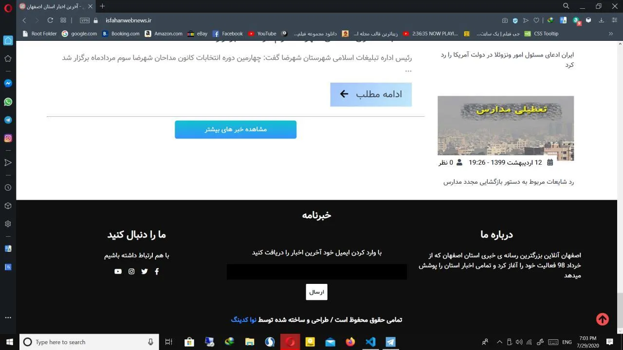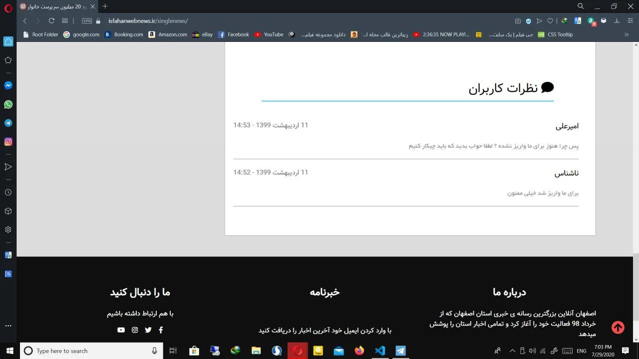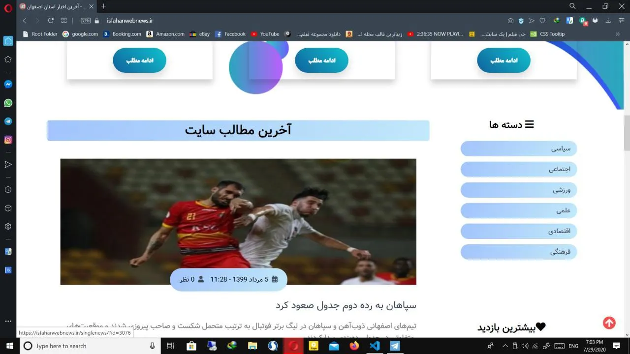 یک سایت خبری طراحی شده با زبان های html css js و بک اند با تکنولوژی asp