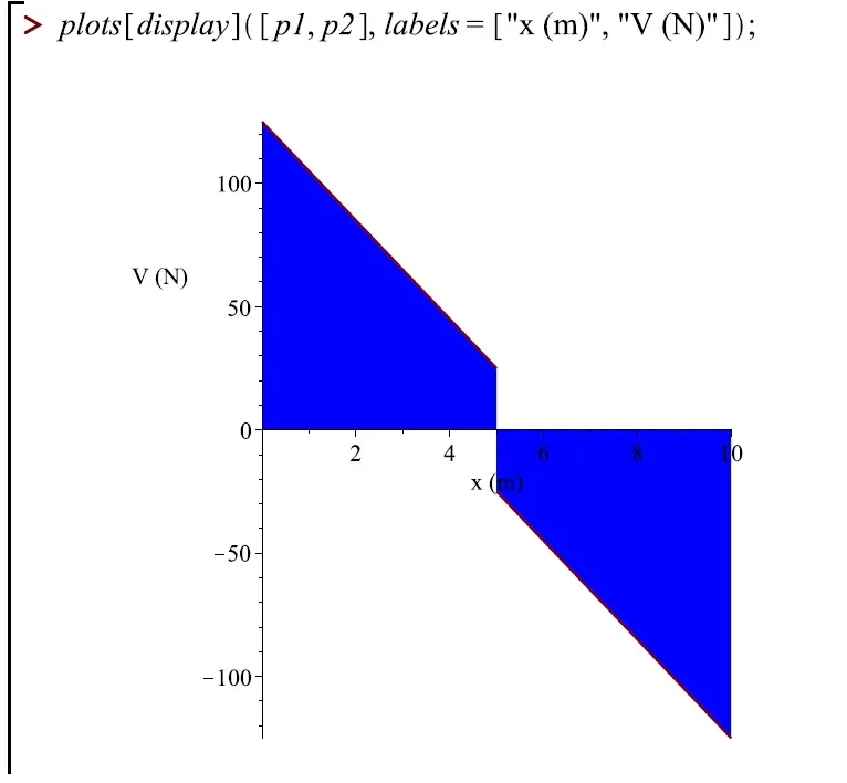 نیروی برشی و گشتاور خمشی روی تیر تحت یک بارگذاری پیوسته با میپل تحلیل شده است.